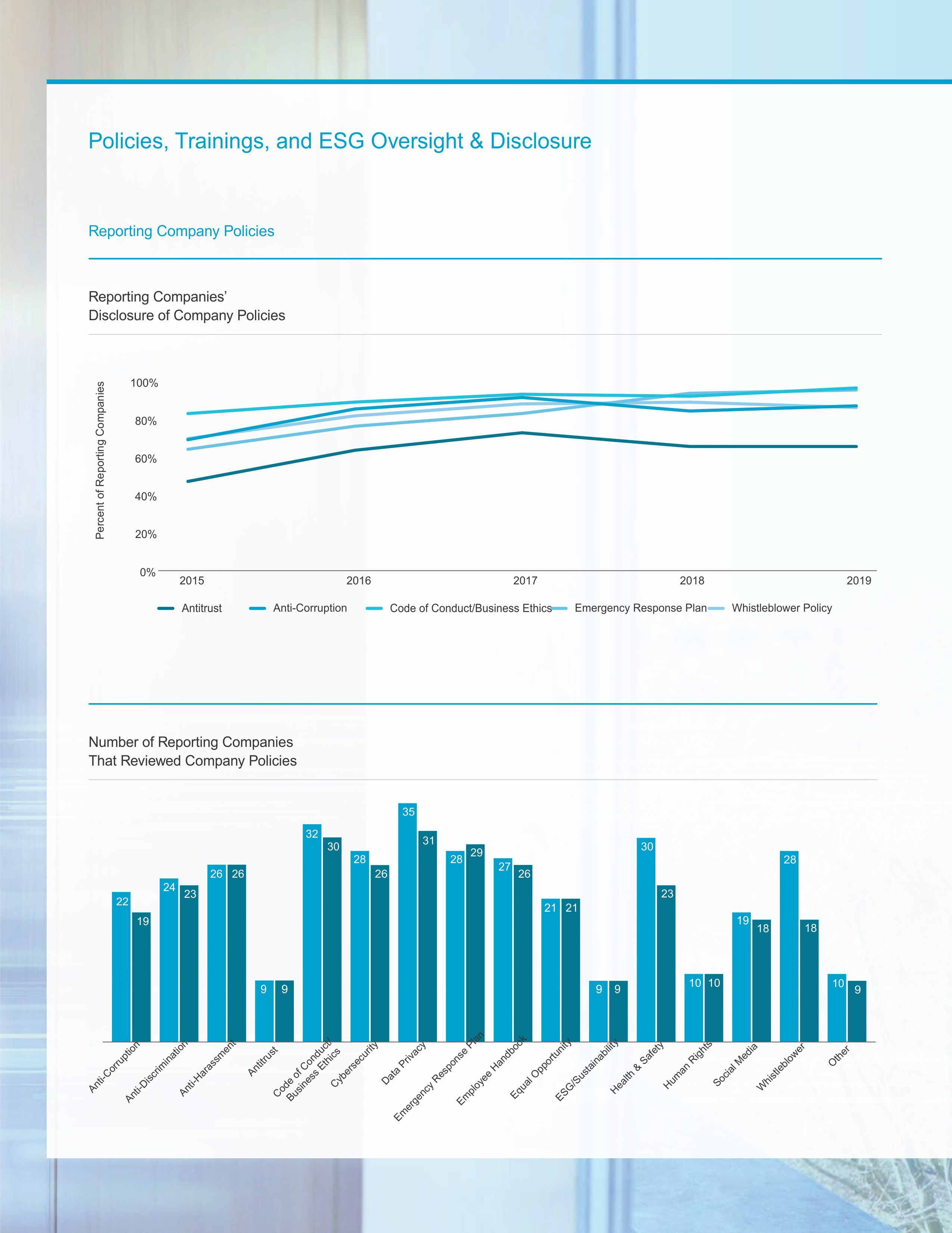 companies’ initiatives in 15 general ESG-related categories. We compile and analyze