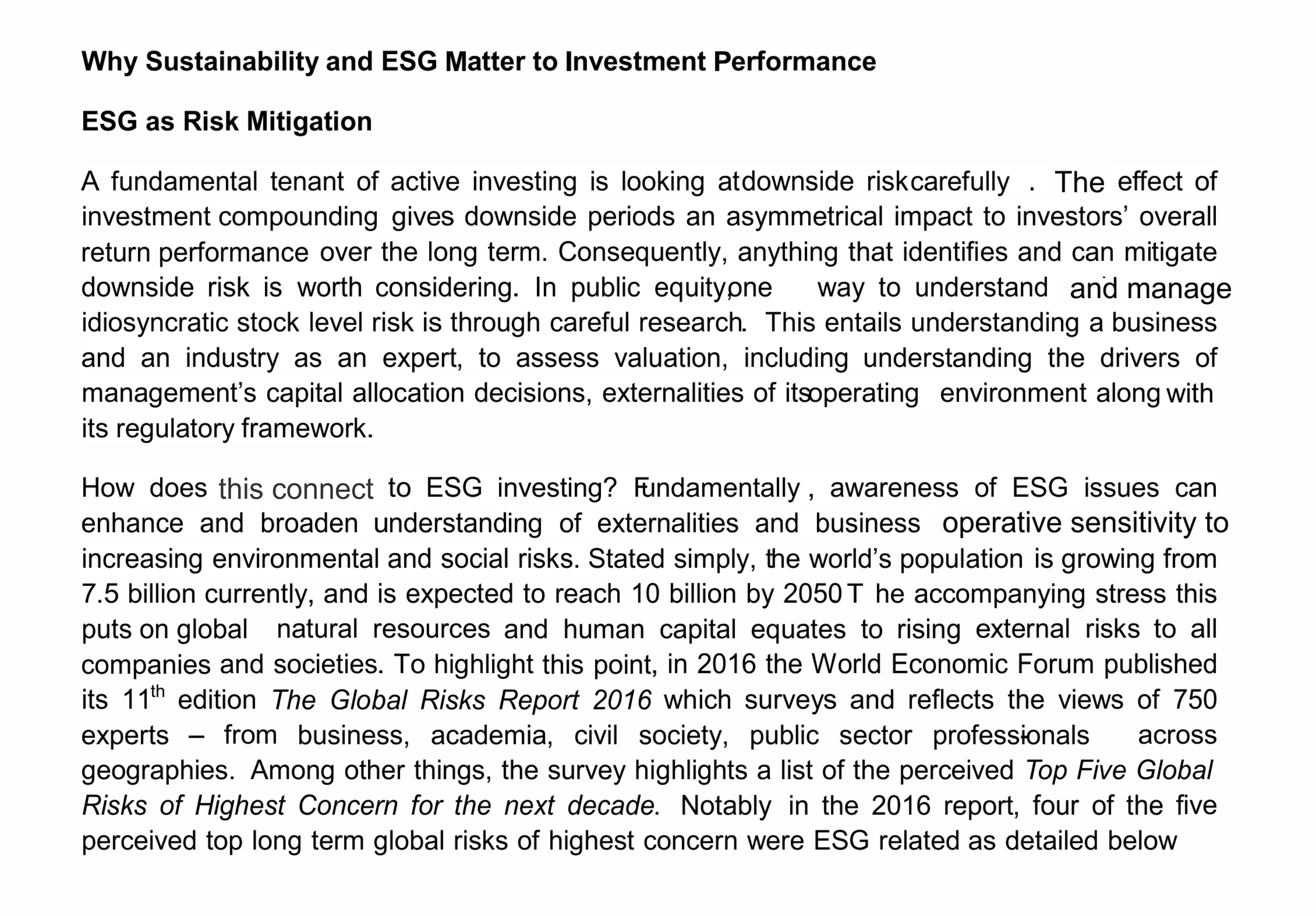 As a value investor, Cavalry Finance believes that careful attention to ESG factors