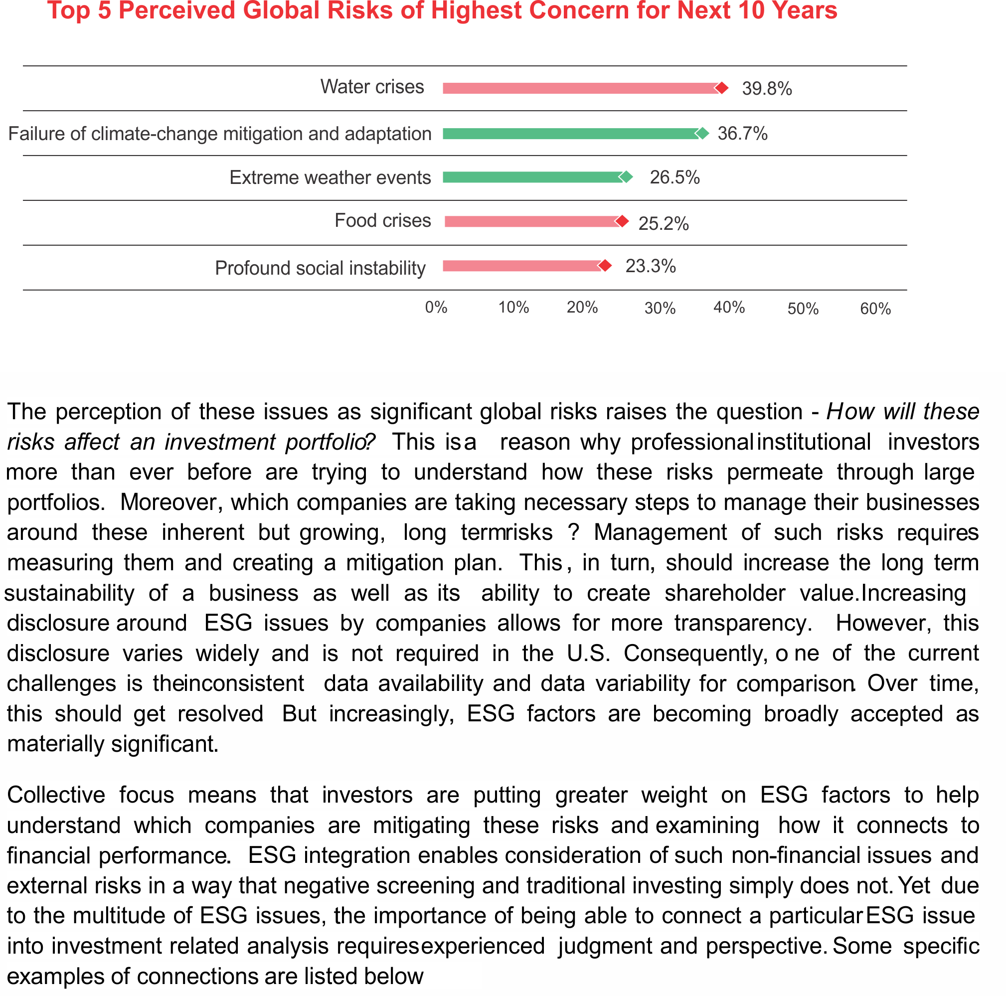 identify ESG risks, risk mitigants and ESG opportunities. Information gained from